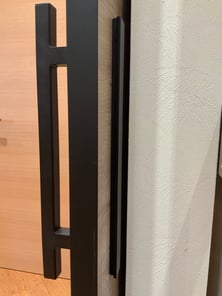 Composto da un maniglione a seziome quadrata 25x25mm e lunghezza 45cm per la parte esterna ed una speciale piastra a scalino da 40cm e una sporgenza di soli 14mm per la parte interna.