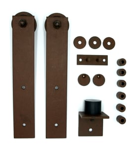 composto da: 1 binario da 2 mt, 2 staffe con ruote, 6 distanziali + 3 ranelle, 2 fermi angolari, 1 guida a pavimento, 2 dischetti di sicurezza.