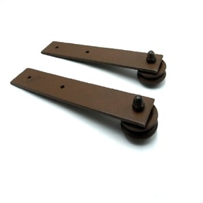 Staffe e ruote con cuscinetto completamente in acciaio. Fornite con viti per legno testa esagonale 8x40mm